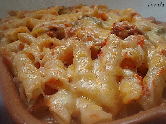 De tod@s es sabido que la pasta sea con lo que sea, a casi todo el mundo le entra de maravilla. Cuantas veces habremos echado mano de ella, añadido un poco de tomate, una lata de atún y hala...a comer. Y cuantas veces nos habrá sacado de algún apuro, bien sea por prisas o por falta de tiempo. Incluso a veces seguro que hemos recurrido a ella, debido a algún imprevisto con el que no contábamos. Como alguién que se te acopla o se autoinvita a comer...por ejemplo. Que comer de moka le gusta a todo dios, y el que diga que no.. tiene que ser primo hermano de Pinocho a narices, (y nunca mejor dicho). Pues bien, esta vez no se ha dado ninguno de los casos mencionados. Así que, con suma tranquilidad me dispuse a preparar unos macarrones un tanto tramposos. Os explico: a una servidora, y como muchas de vosotras sabreís,por la verdura, un rico pescado, o una buena ensalada, hace como la Esteban por su Andreita....MAAAAAA-TAAAAAAA. Pero claro, no puedo decir lo mismo de los individuos con los que me ha tocado convivir. Por lo cúal no me queda otra que de vez en cuando tunear algunos platos para que el personal se lo coma sin reparos, y no me asalten con preguntas tales como: ¿qué es eso verde?, ¿y eso rojo?...!!Señor, que estres!!,hasta le quitan la gana de comer a una. Así que con toda la verdurita bien picadita, y bien mezclada con los demás ingredientes, he conseguido que la fuente de macarrones se comiese sin que la peña me sometiese a un interrogatorio de tercer grado. Aquí os los dejo a ver que os parecen. Yo para la semana...re-pi-to. Me han dado permiso :)