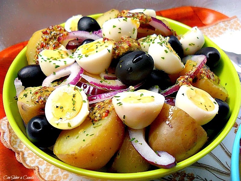 que buenísima pinta y que buena tiene que estar, me ha llamado la atención la ensalada con las patatas con su piel